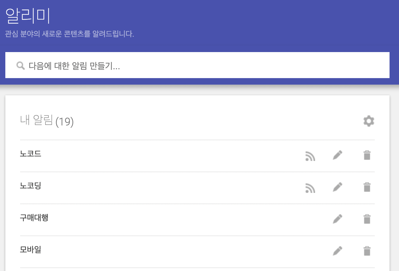구글 알리미를 통해 뉴스나 정보들을 메일 또는 RSS로 수신할 경우