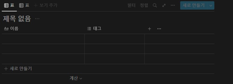 노션에서 표를 우선 생성 합니다 ‘/표’