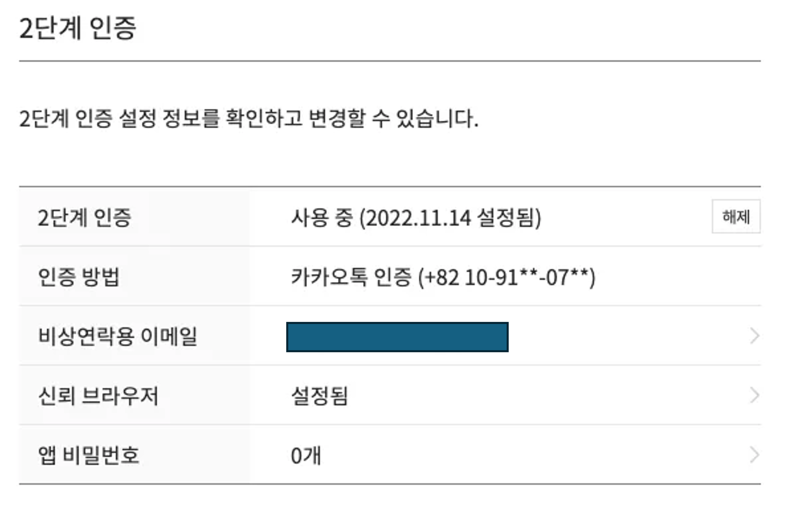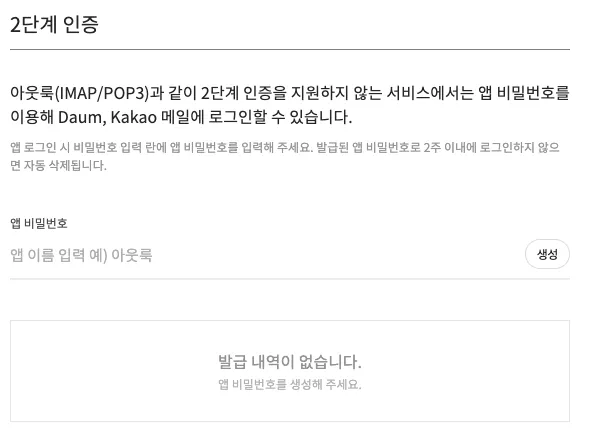 2. 로그인 > 2단계 인증 화면 > '앱 비밀번호' 클릭