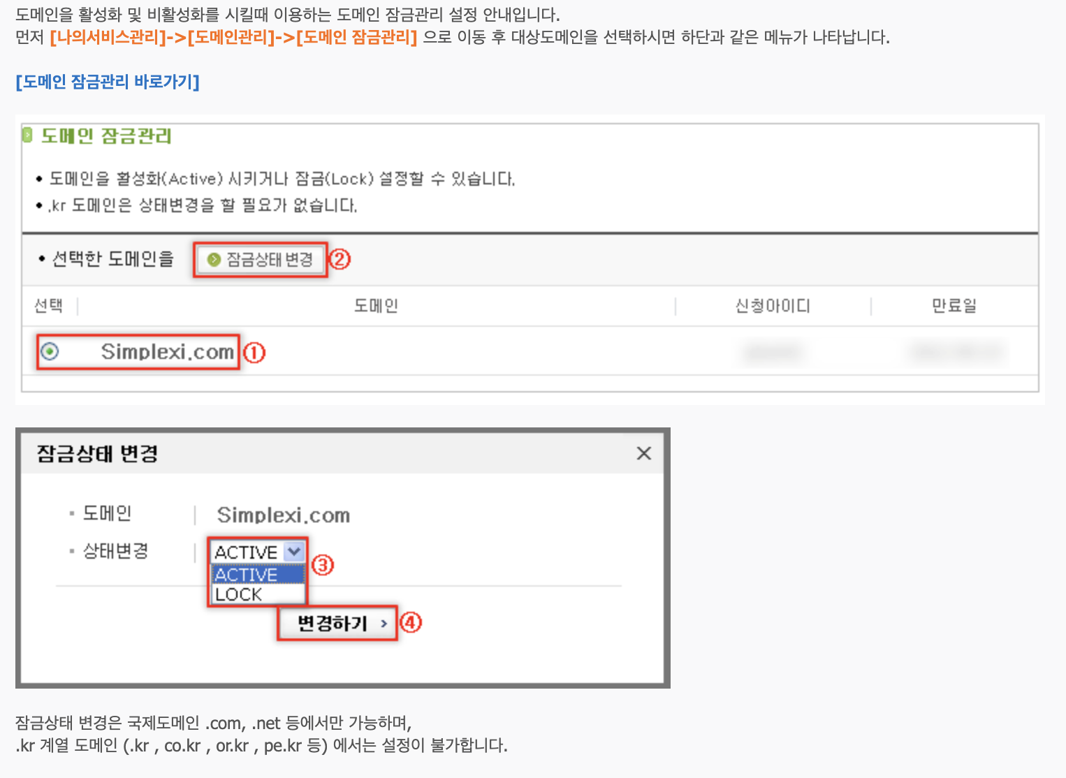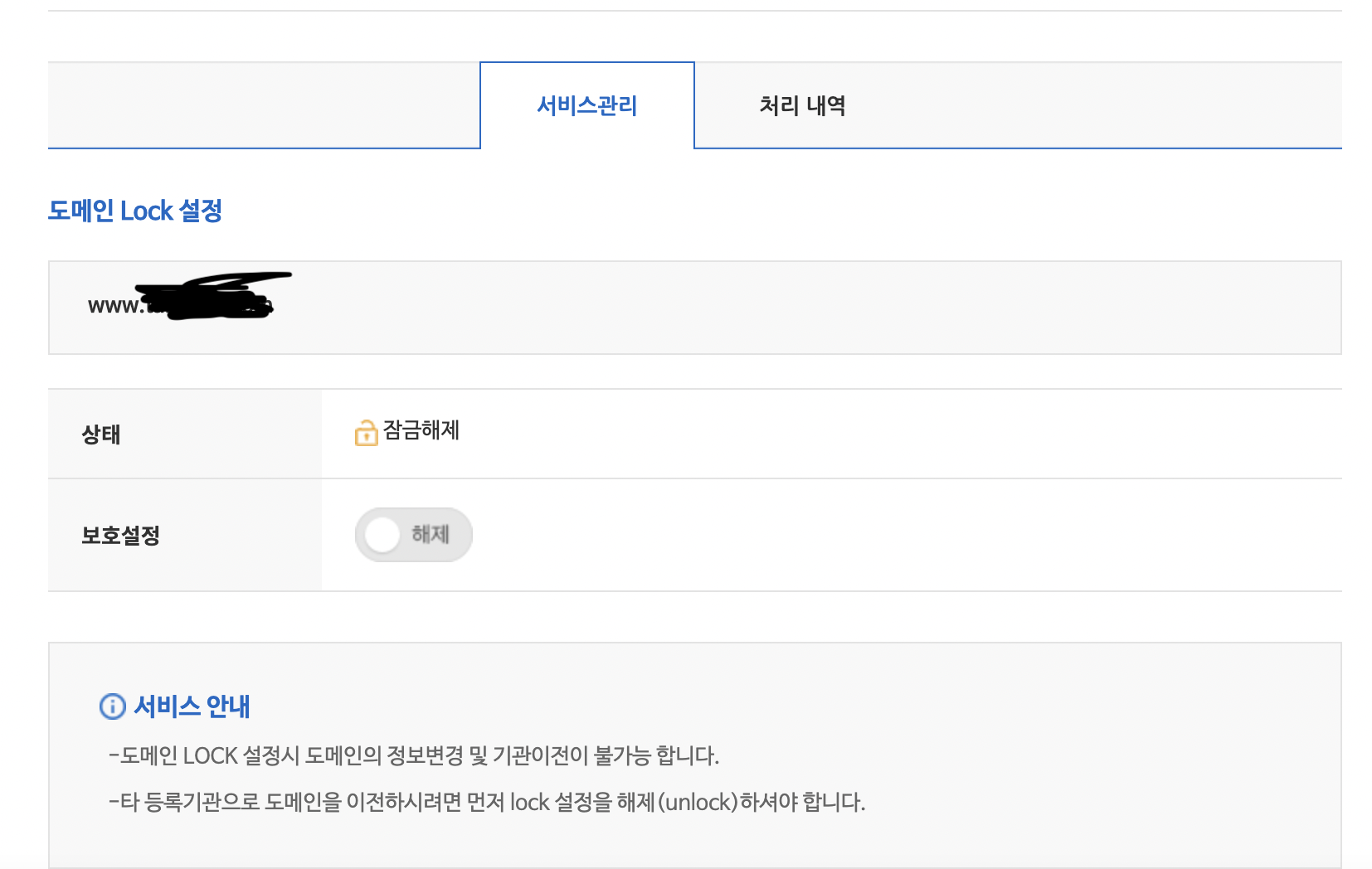 - COM, NET 등 국제 도메인만 LOCK 해제 필요