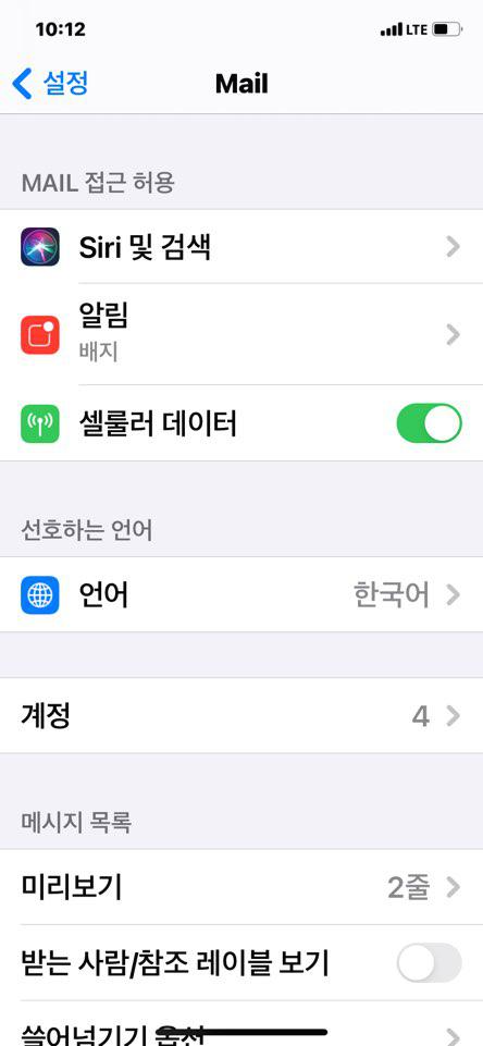 - 설정 > Mail > 계정 > 계정추가