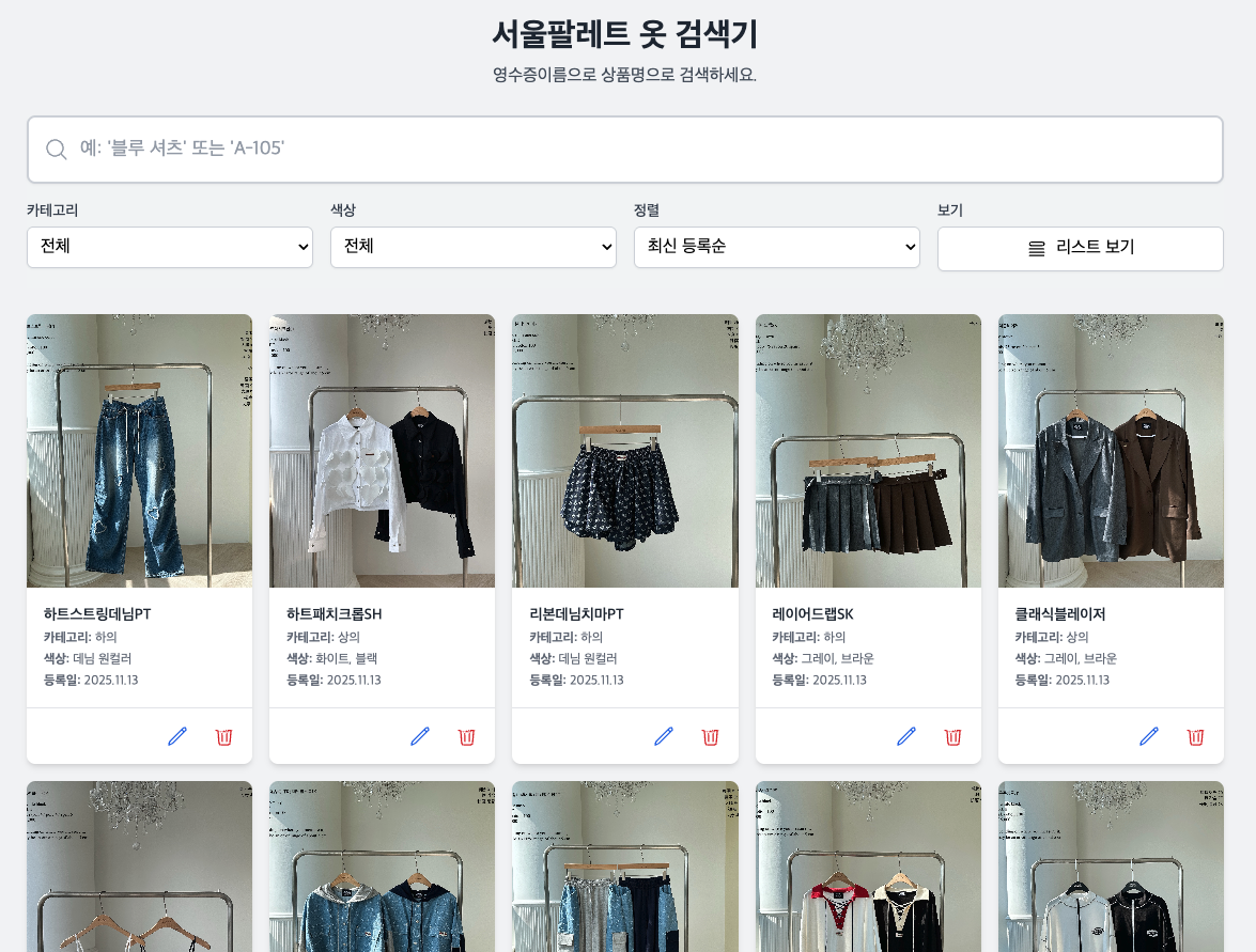 5. 최종 완성된 '서울팔레트 옷 검색기'