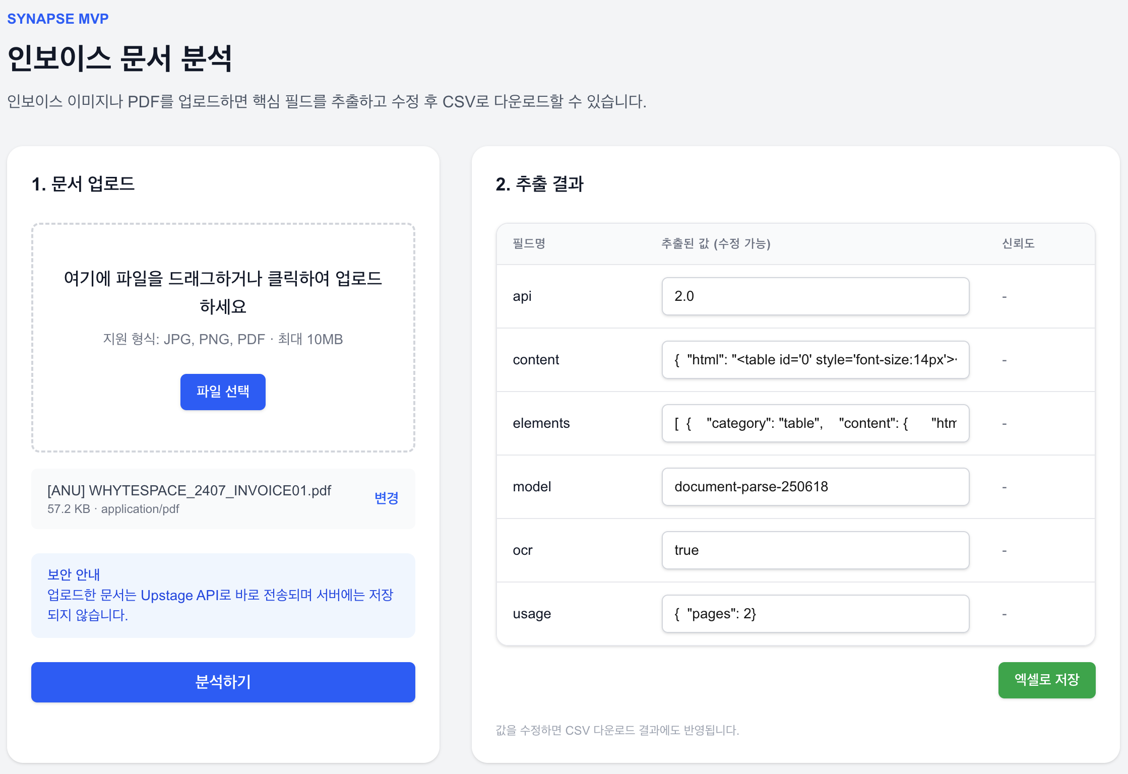 * **정확성:** 핵심 필드(수신자, 총액 등) 기준 99% 이상의 데이터 추출 정확도.