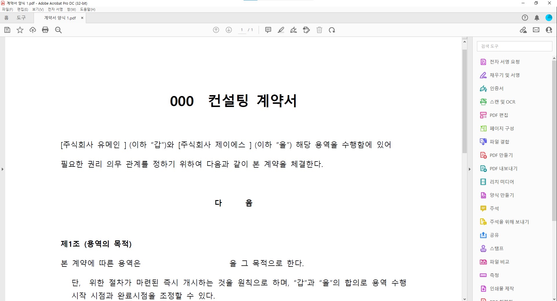 우선 전자계약을 체결할 문서를 생성해야한다. 물론 pdf로 말이다.