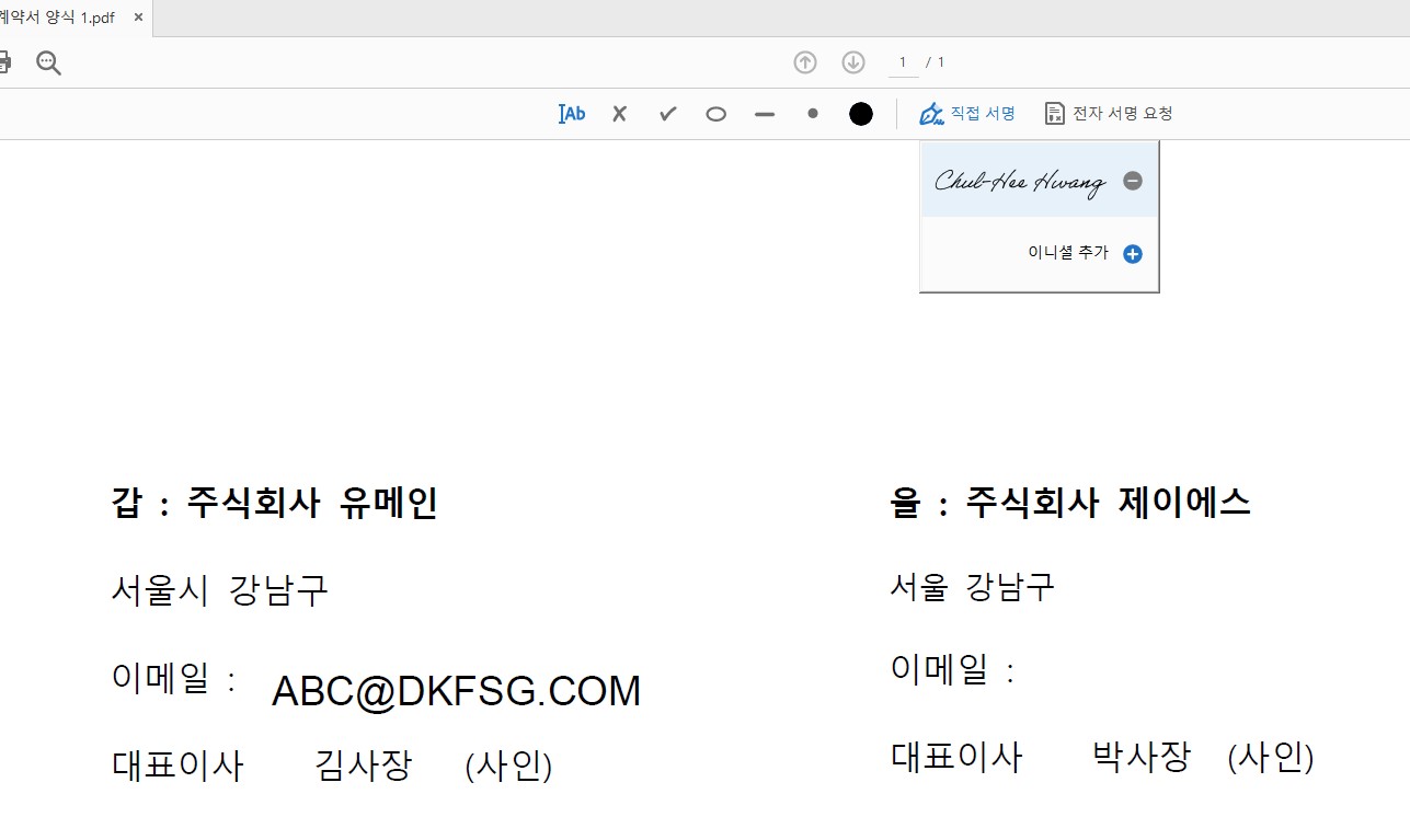 물론 어도비 아크로뱃 전자계약 기능도 유료버젼에만 가능한 것 같다