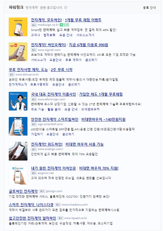 네이버에 '전자계약'이라고 검색하면 아래같이 많은 회사들이 보인다