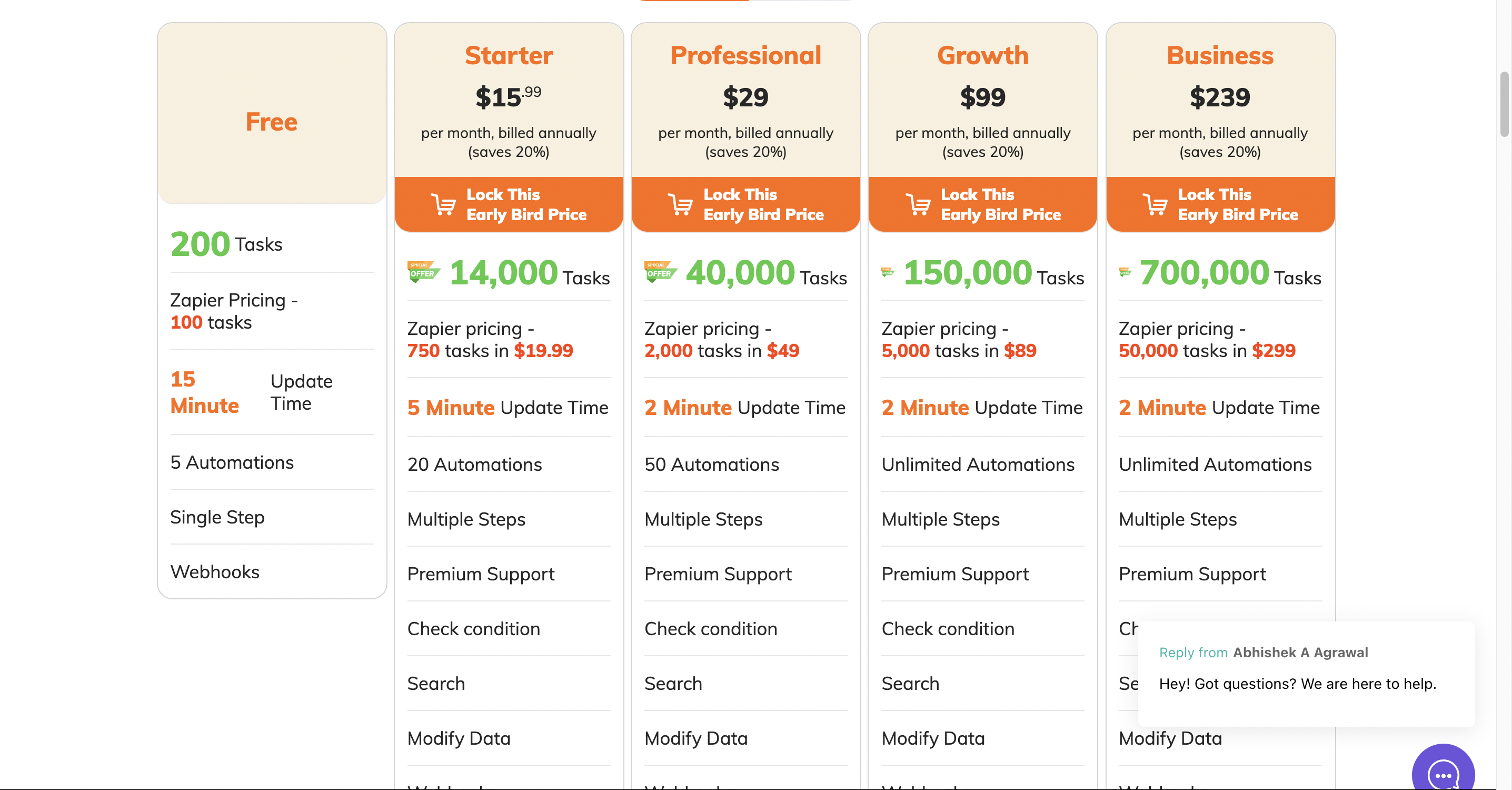 단순 비교를 해봐도 zapier가 750테스크(자동화횟수)에 19.99달러인 반면 integrately.com 는 14,000테스크에 15,99달러