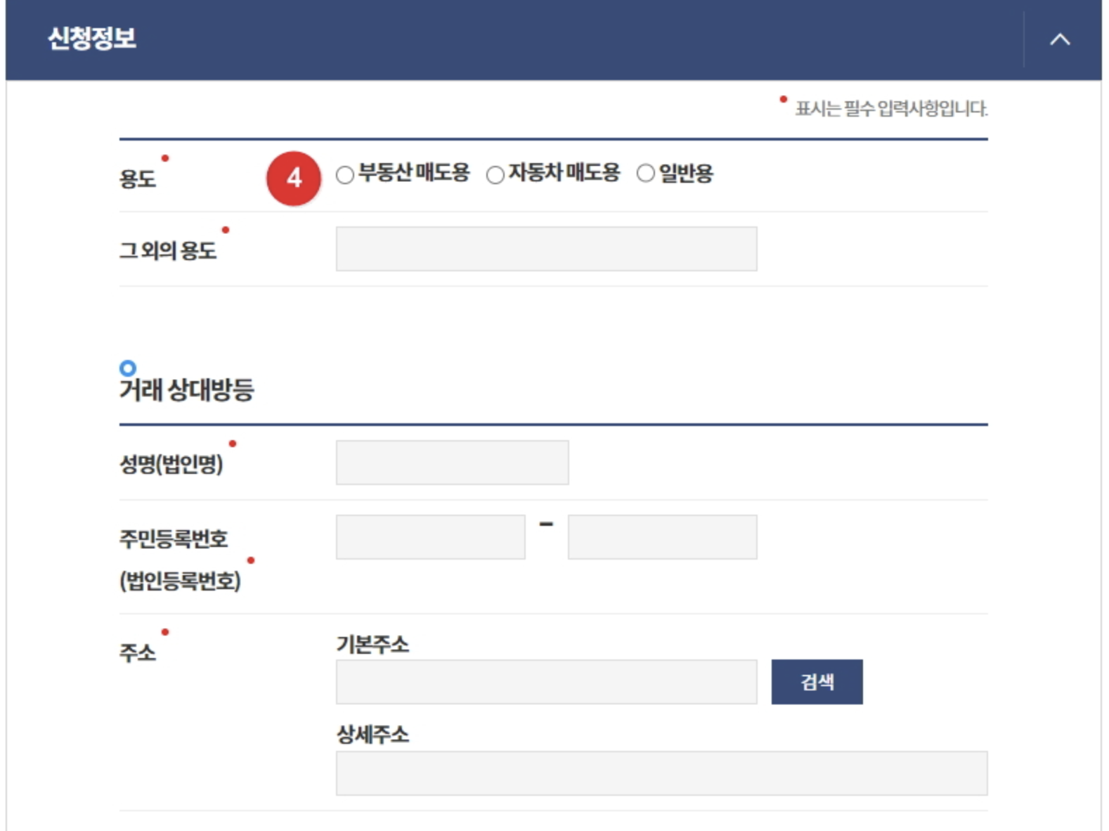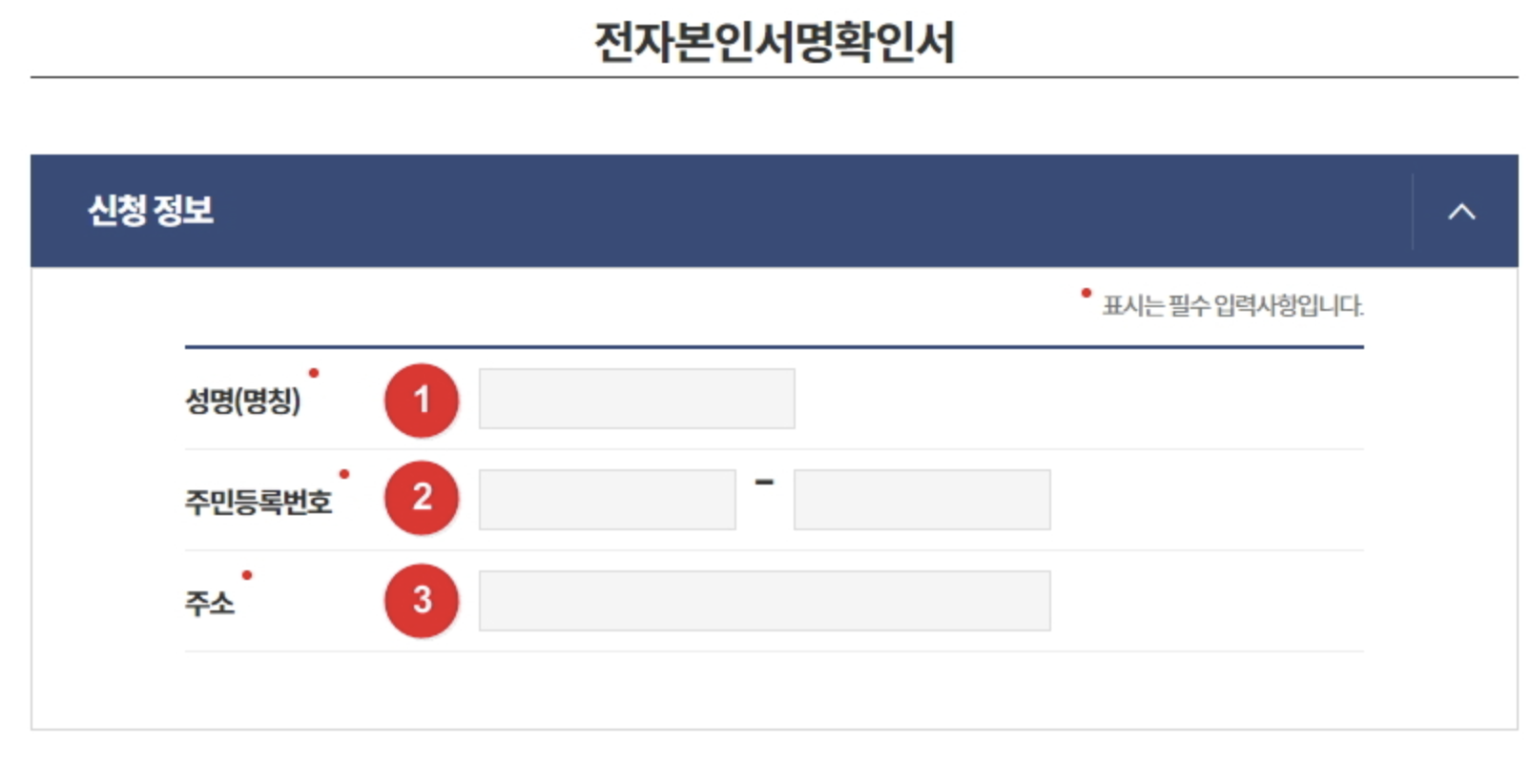 - 신청서 작성: 어떤 용도(예: 계약, 행정 업무 등)로 쓰는지, 발급받을 서류가 무엇인지 입력하고 전자서명을 완료합니다.