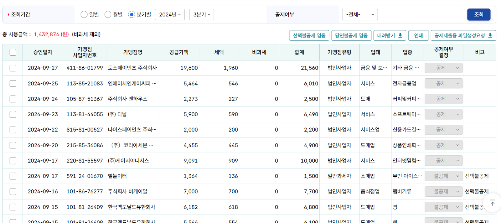 특히 내역 중 일부가 실제 사업에 사용된 것이었지만 불공제로 분류되어 공제 내역에서 확인이 안되는 경우가 많았습니다.