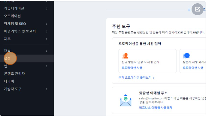 3. WIX 관리자 > 설정 메뉴> 고급> 사용자지정코드